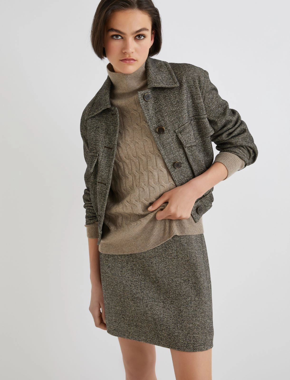 Il fascino intramontabile della maglia a lupetto, in versione femminile e chic. La morbidezza del filato in lana e cashmere e la lavorazione a trecce ne fanno il nuovo passe partout per la stagione fredda.