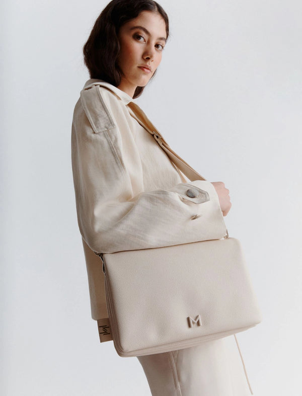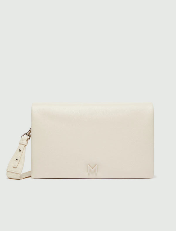 Linee geometriche e look essenziale per la nuova borsa a tracolla con patta profonda. Clean look da indossare ogni giorno.