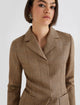 Scolpisci la silhouette e definisci un nuovo stile con questa giacca in pura lana dalle linee aderente. Le pince profonde sul busto aggiungono carattere e disegnano la silhouette.