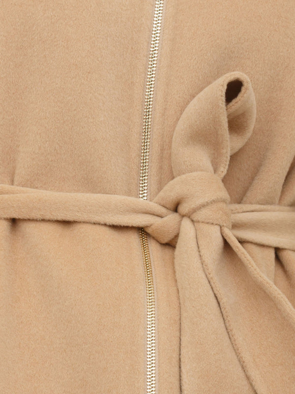 Cappotto ampio Marella realizzato in misto lana e dotato di zip oro su tutta la lunghezza con doppio cursore e colletto. Design con tasche laterali e cintura in vita. Bellissimo da utilizzare sia con outfit eleganti che casual. La modella è alta 1.72 e indossa la taglia 40.