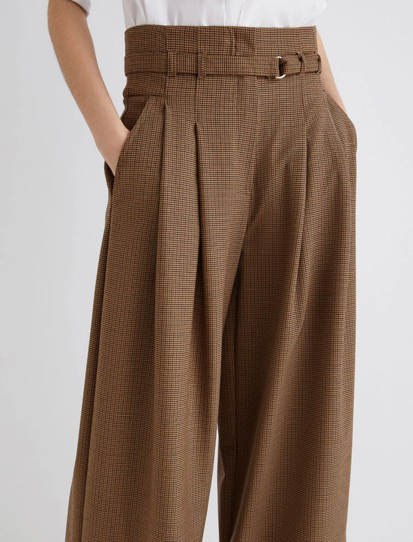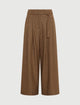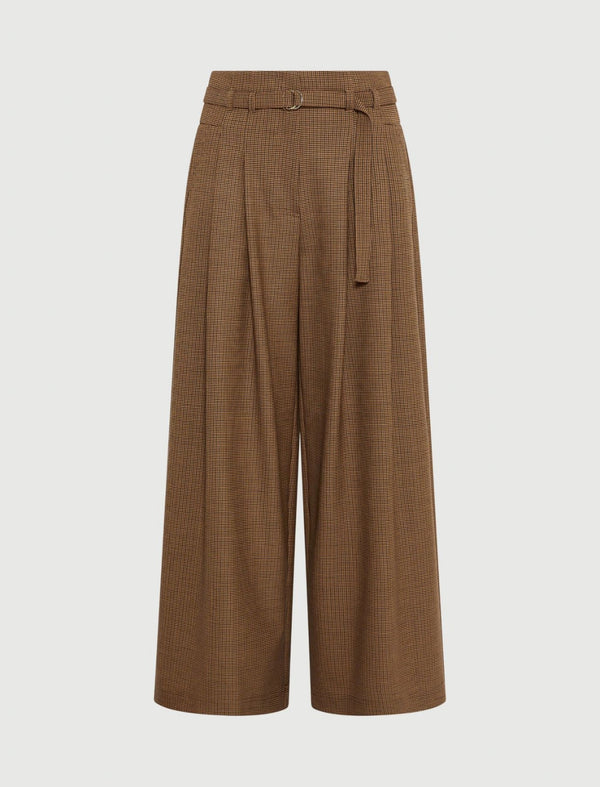 Evoluzione cool del pantalone a vita alta, con volume ampio sulla gamba per una silhouette slanciata. Il dettaglio della cintura in vita con fibbia metallica aggiunge quella giusta nota casual che definisce il look.