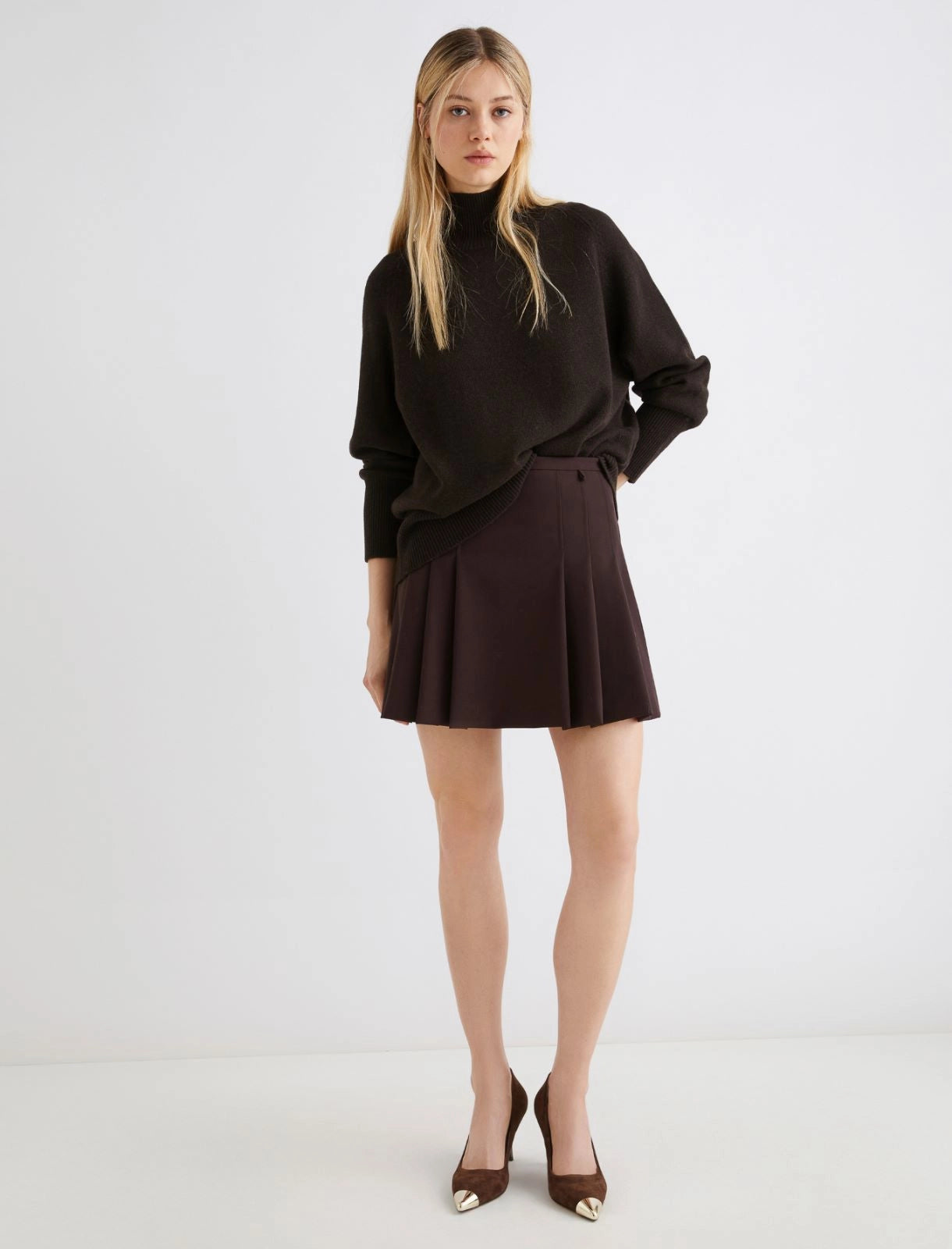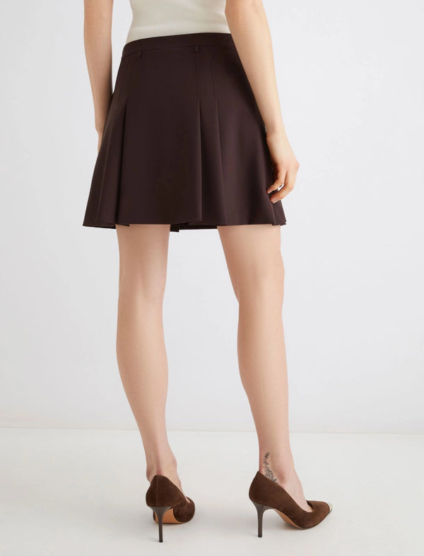 Segue i trend di stagione questa gonna con pieghe sul davanti: un po' bon ton, un po' active, in un mix leggero di linee che tendono ad aprirsi al fondo.