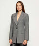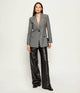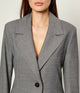 Blazer da donna Marella, modello "Siamese", in misto lana vergine dal raffinato colore grigio. La silhouette sartoriale è valorizzata da spalline imbottite, chiusura frontale con un solo bottone e due tasche laterali con patta.