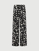 Con la sua linea leggermente flare, questo è il pantalone che conquisterà il tuo cuore. Fluido e luminoso grazie al satin stampato, si chiude con gancio a uomo e slancia la silhouette, ritmato dalle note giocose della fantasia "Ball machine"