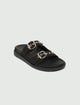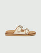 Easy and chic: il sandalo a doppia fascia porta con sé l'allure del modello casual con tutta la femminilità di materiali e dettagli raffinati.