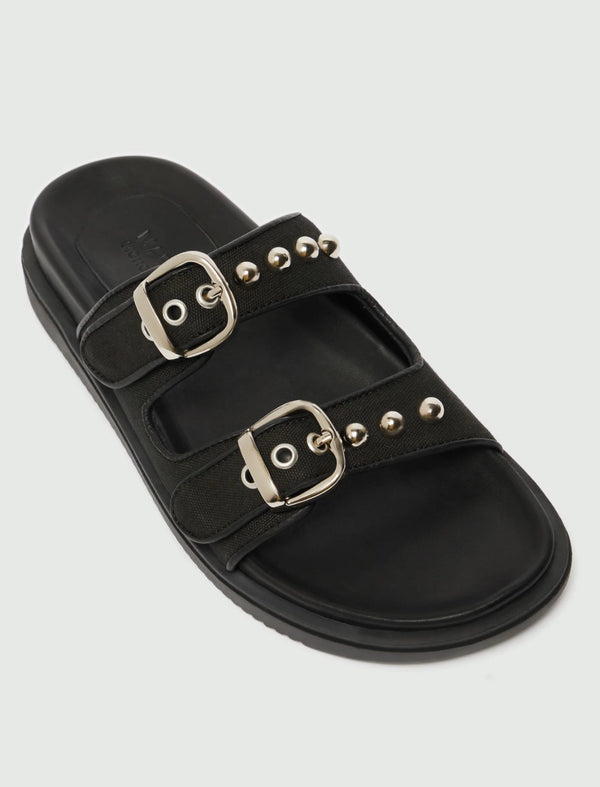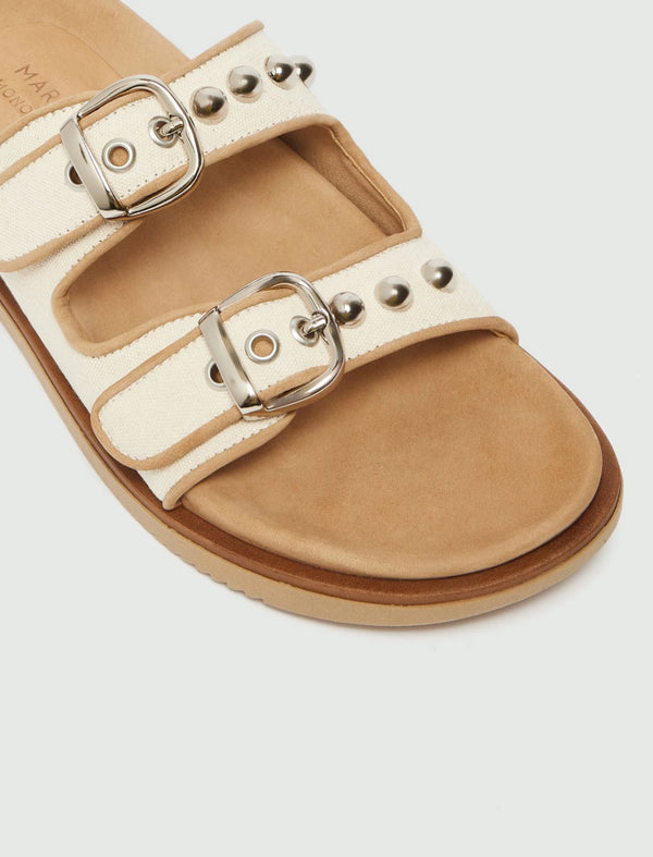 - Tomaia a doppia fascia con borchie in finitura nickel