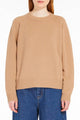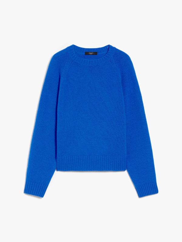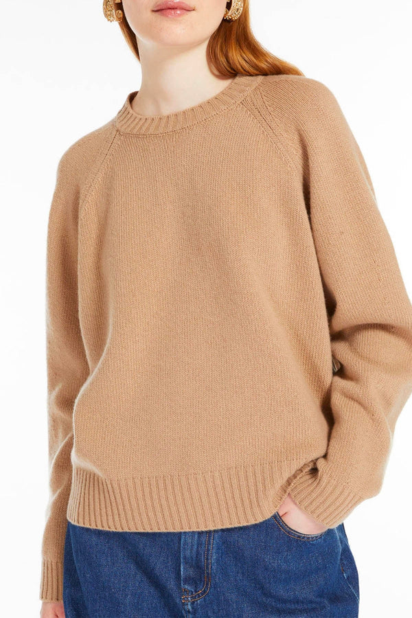 Maglia girocollo dalla vestibilità morbida, realizzata in pregiato filato di pura lana lavorato a punto rasato. Il modello presenta lunghezza regolare, ampie maniche lunghe raglan e bordi rifiniti a costine.