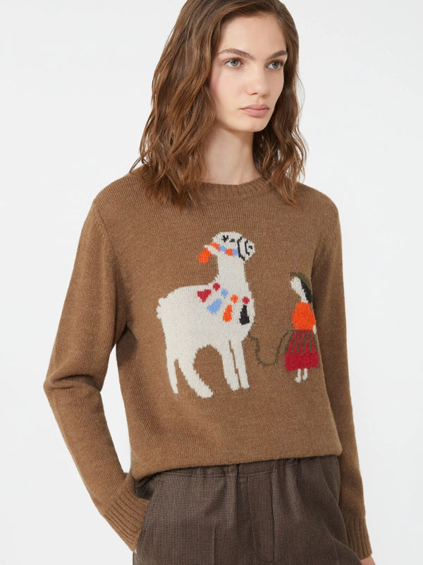 Maglia girocollo, personalizzata con motivo di collezione intarsiato al centro sul davanti.