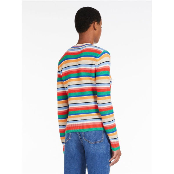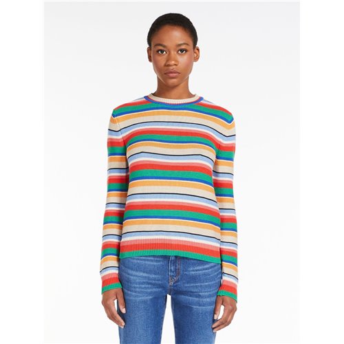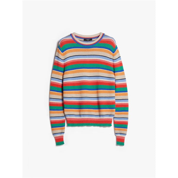 Maglia girocollo in filato di puro cotone con motivo a righe multicolor. Vestibilità regular, maniche lunghe e bordi lavorati a coste.