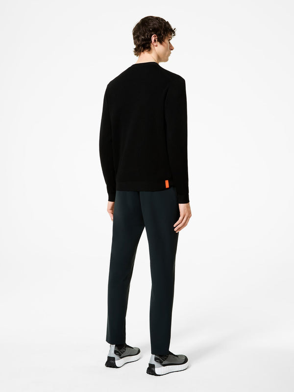 L'originale design della maglia girocollo monocroma a maniche lunghe si distingue per la lavorazione a finissime coste inglesi, che la rende perfetta sia come sottogiacca in ufficio in abbinamento a un blazer sportivo, sia per completare un capospalla di mezza stagione per un look casual. Il fit regolare e il tessuto elasticizzato e morbidissimo al tatto, combinati al taglio delle maniche lunghe, assicurano comfort e libertà di movimento in ogni situazione. Il colletto, i polsini e il bordo inferiore sono rifiniti in coste elasticizzate. L'inserto arancione sul fondo posteriore e il logo a microiniezione nero sulla manica sinistra aggiungono una nota iconica alla creazione, proposta in un'ampia palette di colori.