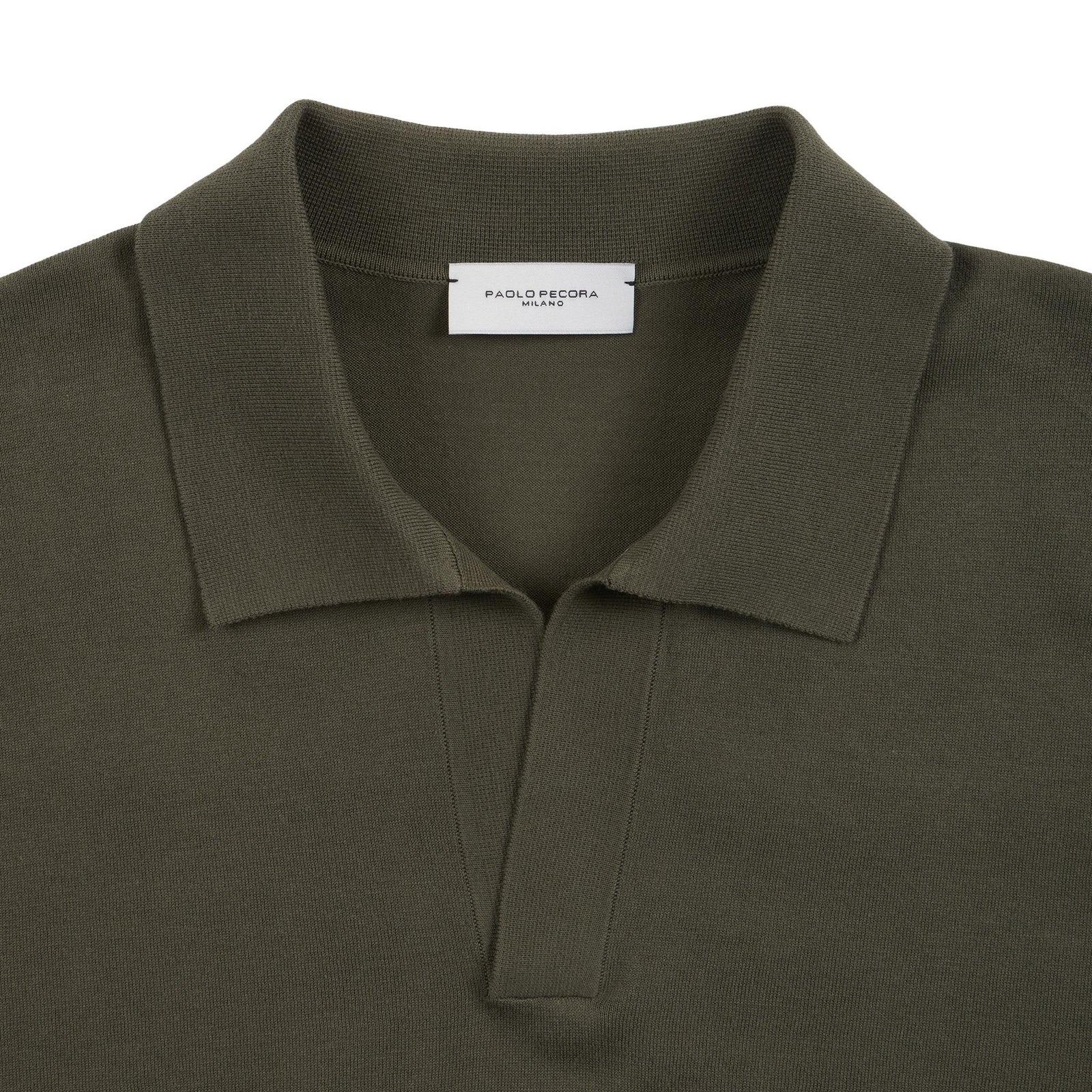 La costruzione essenziale valorizza il cotone attraverso una superficie compatta e uniforme, resa pulita dalla lavorazione rasata. Il collo aperto introduce un’attitudine più rilassata, mentre la tonalità verde scuro aggiunge profondità al capo, rendendolo versatile e contemporaneo.