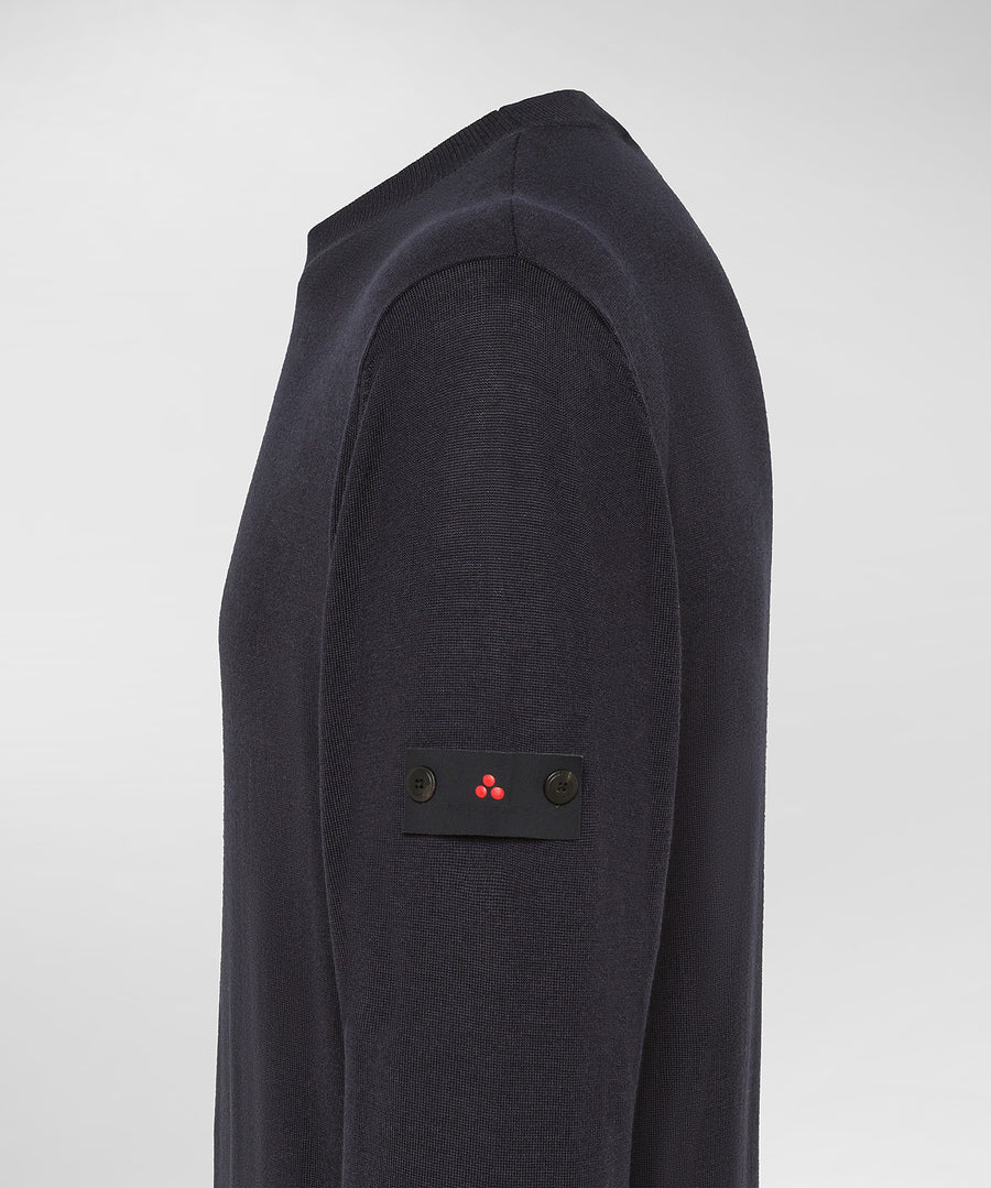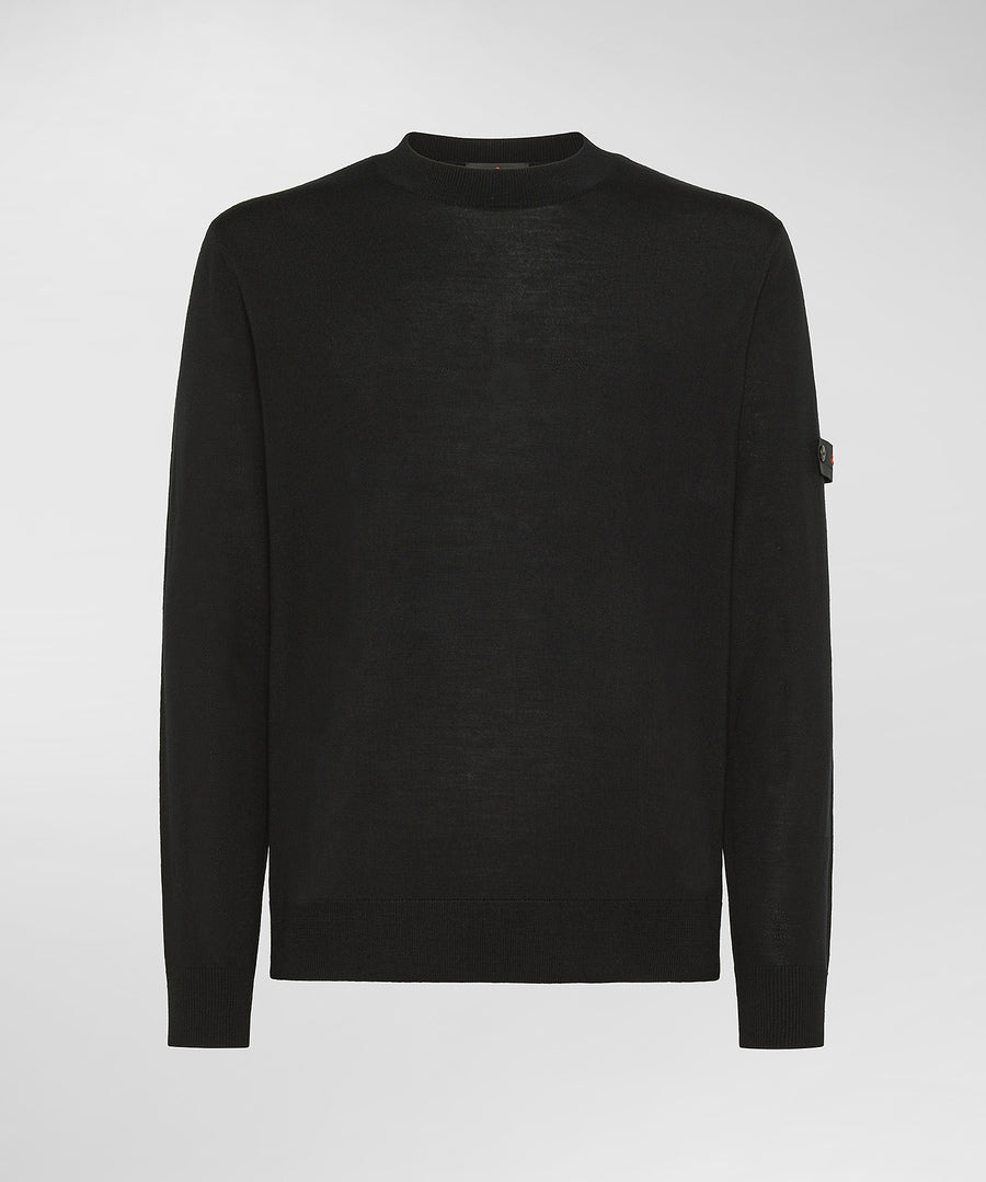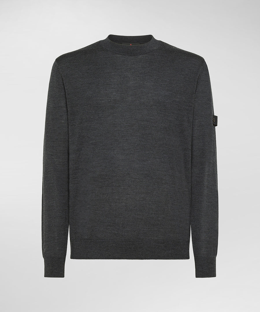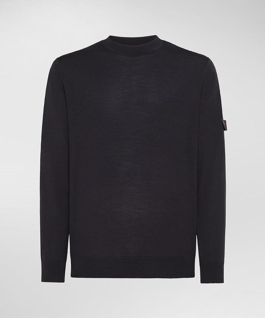 Maglia girocollo in tricot di misto lana merino, apprezzata per la sua morbidezza, leggerezza e capacità di garantire un comfort termico ideale. I dettagli a coste su collo, polsini e fondo definiscono la vestibilità con eleganza. La personalizzazione con logo Peuterey trilogy, simbolo iconico del brand, è applicata con discrezione sul braccio sinistro tramite delicati bottoncini. Un capo versatile, perfetto per completare con stile il guardaroba invernale.