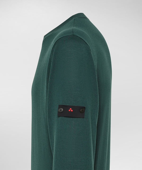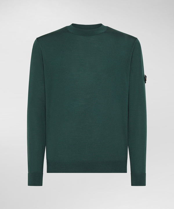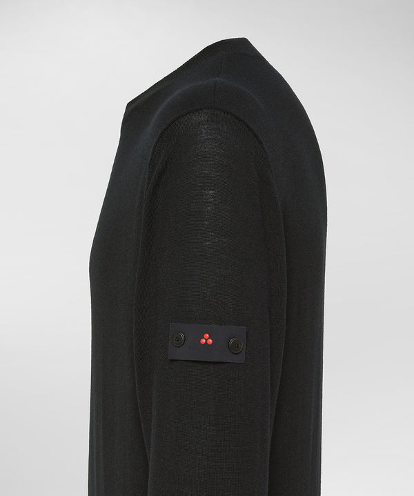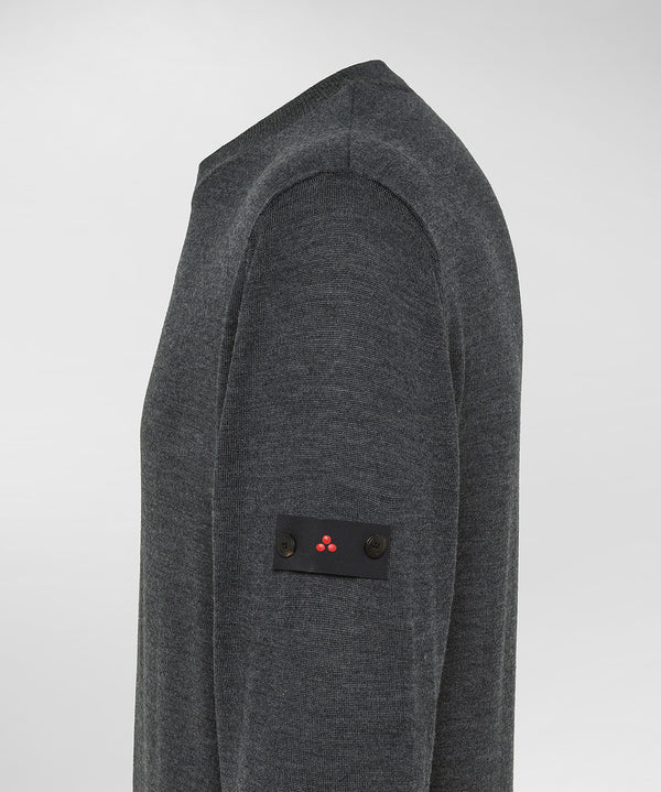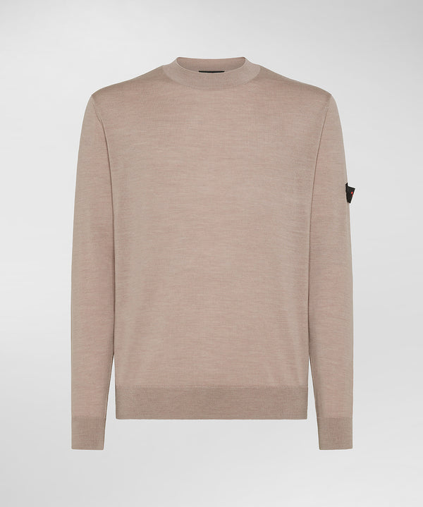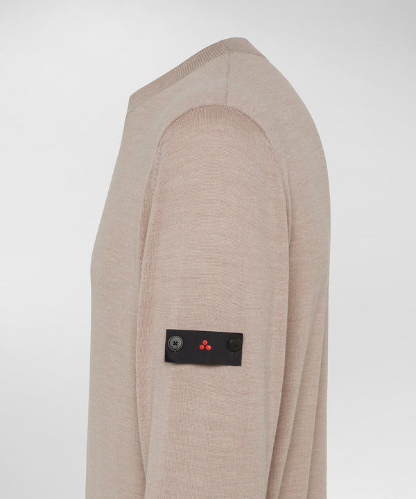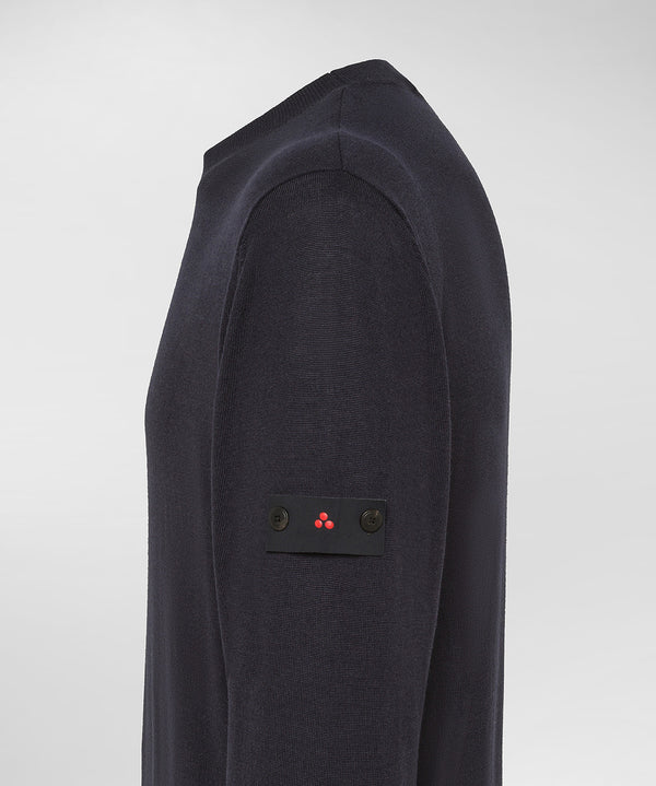 Maglia girocollo in tricot di misto lana merino, apprezzata per la sua morbidezza, leggerezza e capacità di garantire un comfort termico ideale. I dettagli a coste su collo, polsini e fondo definiscono la vestibilità con eleganza. La personalizzazione con logo Peuterey trilogy, simbolo iconico del brand, è applicata con discrezione sul braccio sinistro tramite delicati bottoncini. Un capo versatile, perfetto per completare con stile il guardaroba invernale.