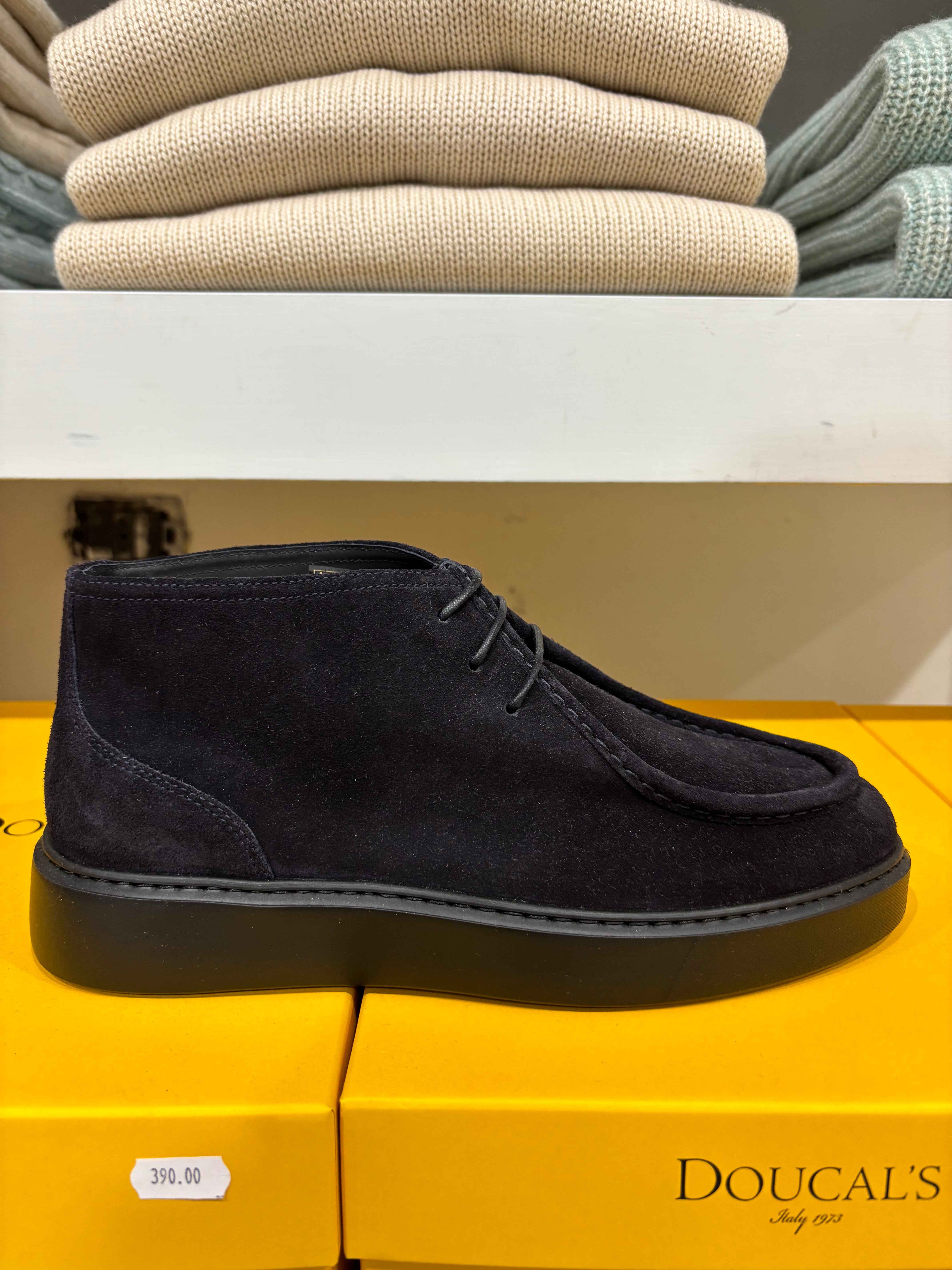 Stivaletto in suede nelle tonalità del blu. Tendenza vintage e sportivo per questo modello, grazie alla suola in gomma stile sneakers. La soletta in memory foam nell'iconico giallo "Golden Cream" garantisce comodità alla calzatura. Lavorazione Ago con suola in gomma ultra leggera. Made in Italy.
