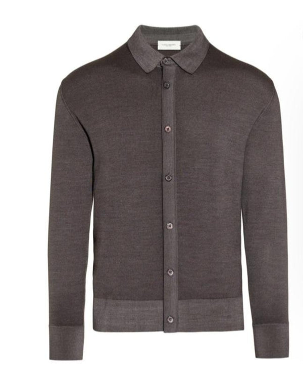 Camicia in maglia realizzata in lana merino extrafine, sottoposta a tintura in capo per ottenere l’inconfondibile effetto fade dal carattere vissuto. Il design combina colletto classico, chiusura a bottoni e profili tono su tono, unendo la struttura della camicia alla morbidezza della maglieria. La vestibilità loose assicura comfort e modernità, per un capo versatile e raffinato, ideale da indossare da solo o sotto giacche e blazer.
