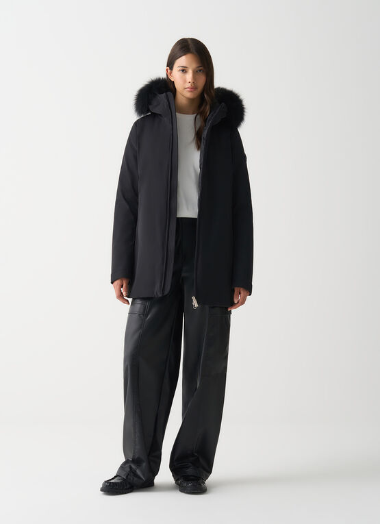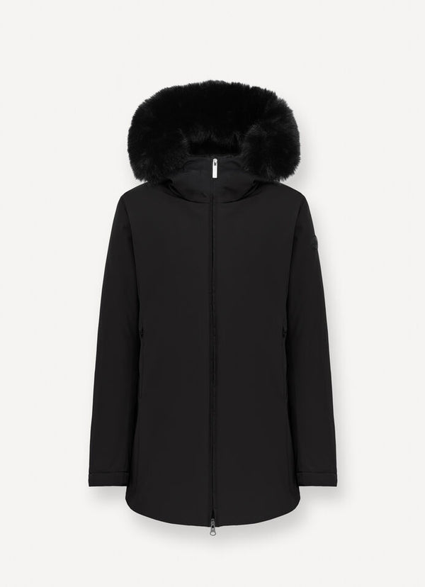 Tecnico e romantico, il piumino da donna con protezione impermeabile e cappuccio in pelliccia sintetica unisce stile e comfort per le giornate fredde.Progettata per offrire la massima protezione in inverno grazie alla sua impermeabilità, senza rinunciare a uno stile romantico e femminile, questa giacca in piuma unisce armonia e funzionalità. Il cappuccio con pelliccia sintetica e le tasche laterali con zip aggiungono dettagli distintivi, mentre il tessuto stretch assicura un comfort ottimale in ogni movimento.