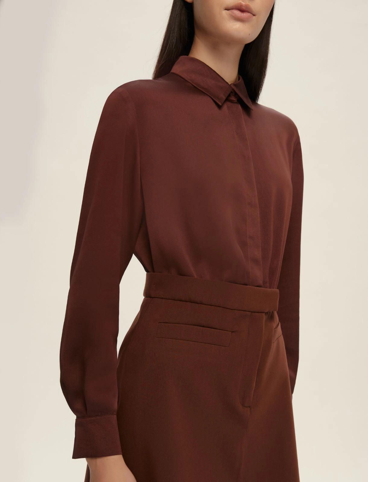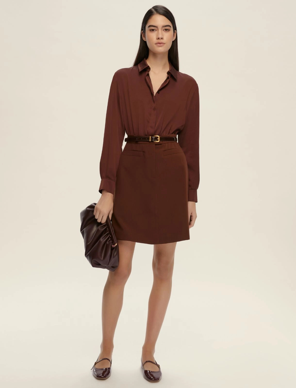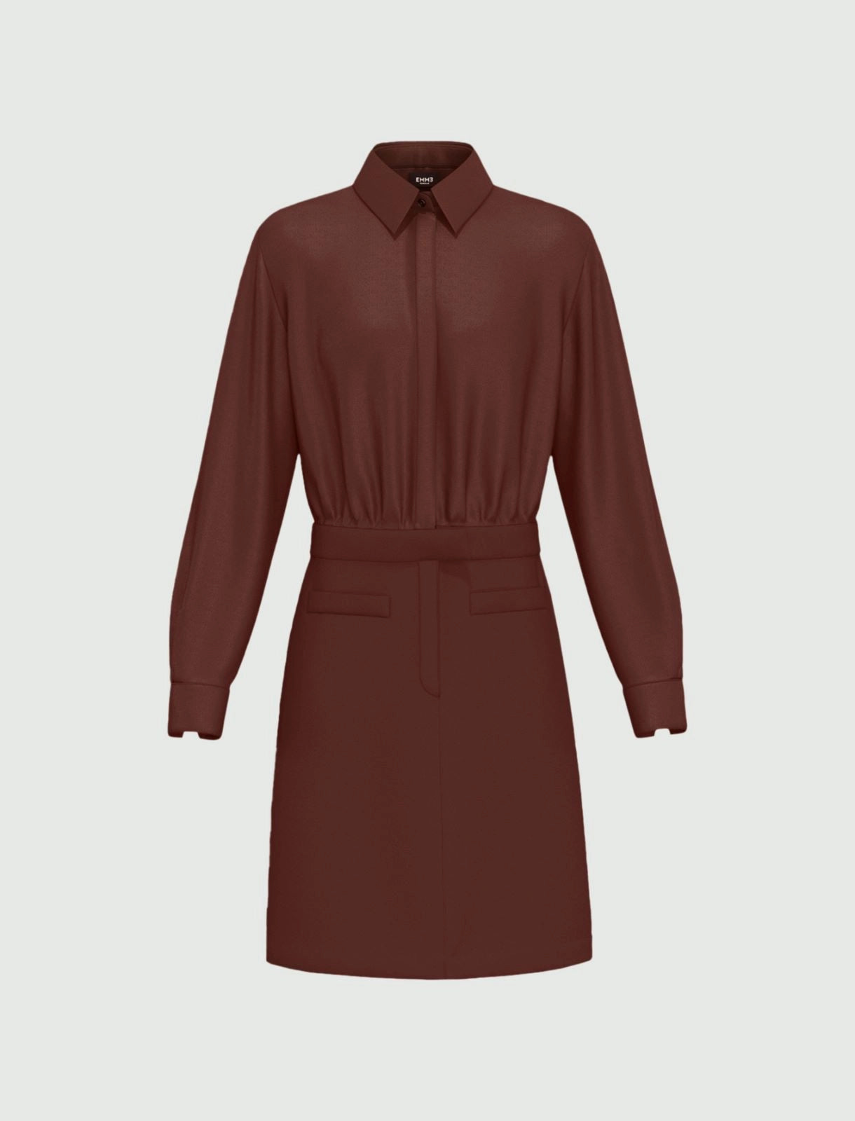 - Abito doppio materiale: top in raso martellato, gonna in tessuto doppio stretch