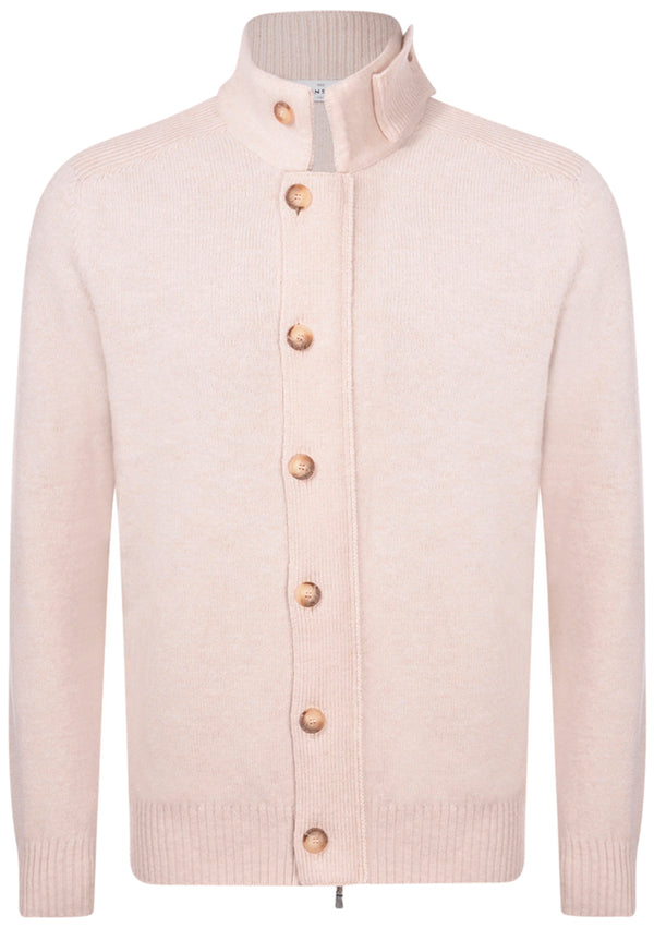 Giubbino in lana Super Geelong a 2 fili con chiusura con zip con doppio cursure ed 8 bottoni. Il lembo del collo può essere chiuso sulla parte frontale o sul lato grazie a due bottoni. Un capo versatile, indossabile come cardigan nei mesi più caldi, oppure come capospalla durante le giornate più miti. Fashion fit.