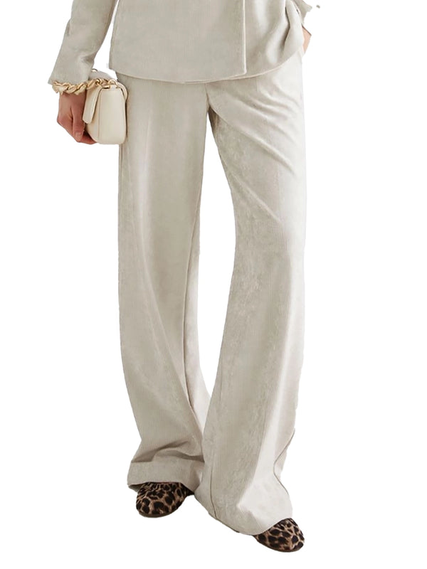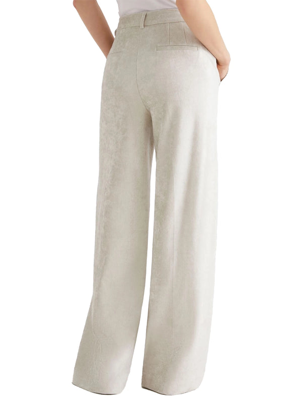 Il pantalone in velluto a coste color avorio unisce luminosità e comfort in una linea dritta e versatile.