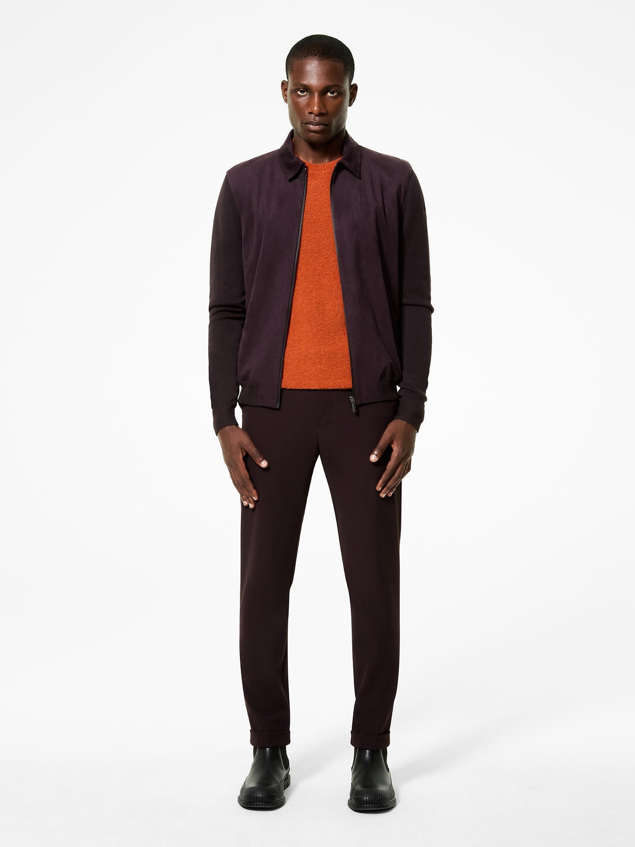 Un design senza tempo, reinterpretato con sensibilità e texture contemporanee. Nabucco Denny Soft Jkt celebra l'eleganza informale maschile degli anni 60 attraverso uno stile essenziale e raffinato. Il fronte è realizzato in tessuto tecnico eco suede a effetto nabuk, che si distingue per l'aspetto sofisticato, la mano straordinariamente soffice e il comfort avvolgente. Le maniche e il dorso in maglina elasticizzata offrono libertà di movimento, mentre le finiture a sottilissime coste inglesi millerighe su fondo e polsi definiscono con precisione la linea. Il colletto a camicia e la zip con cursore metallico completano l'insieme con equilibrio, fra tradizione e un accento di modernità. Il logo nero a microiniezione sulla manica sinistra firma con sobrietà un capo pensato per durare nel tempo, perfetto in abbinamento con un paio di chino tradizionali della collezione, per un look casual ispirato al passato, ma radicato nel presente.