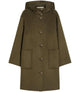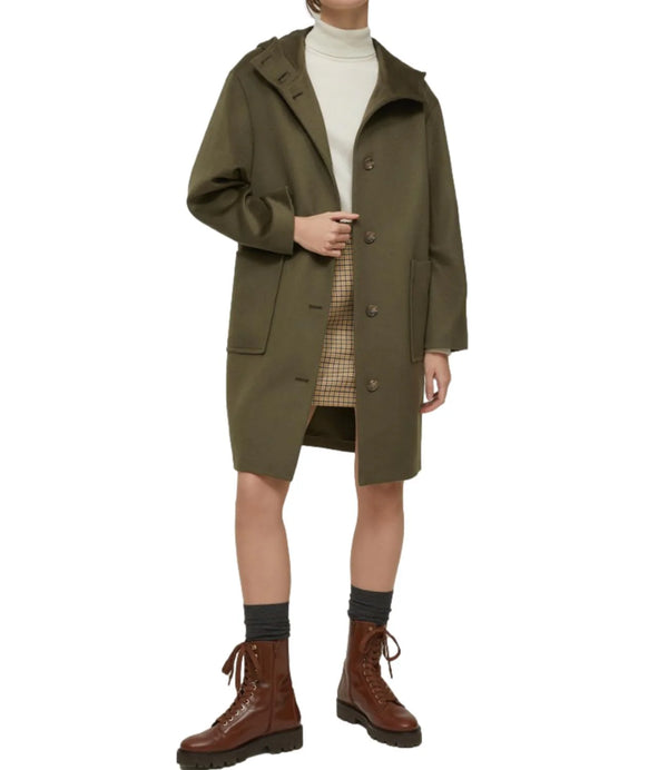 Ispirato al montgomery e rivisitato con un design pulito, il cappotto in drap di pura lana è in equilibrio perfetto tra casual e chic.