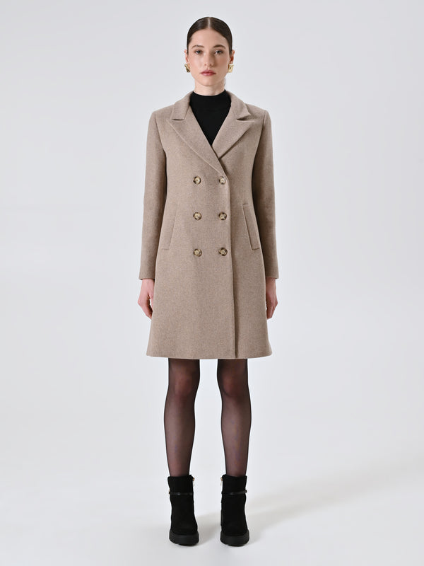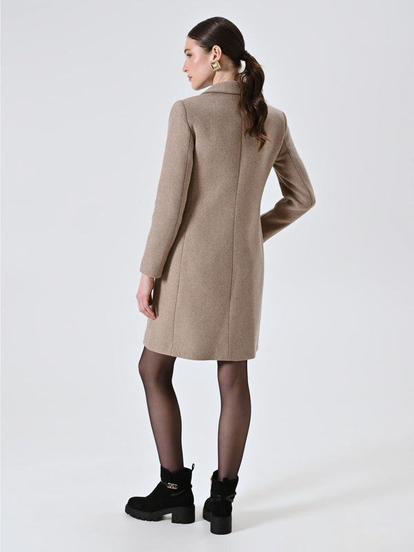 Il Cappotto Doppiopetto con Revers a Lancia è un capospalla dallo stile deciso e femminile, perfetto per accompagnarti con eleganza nei look da giorno.