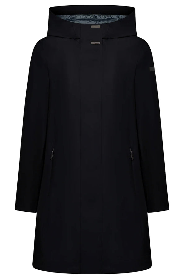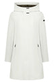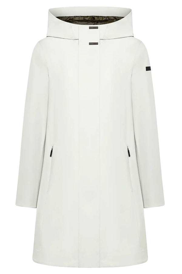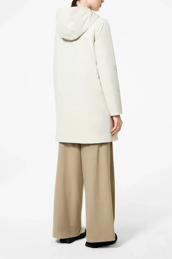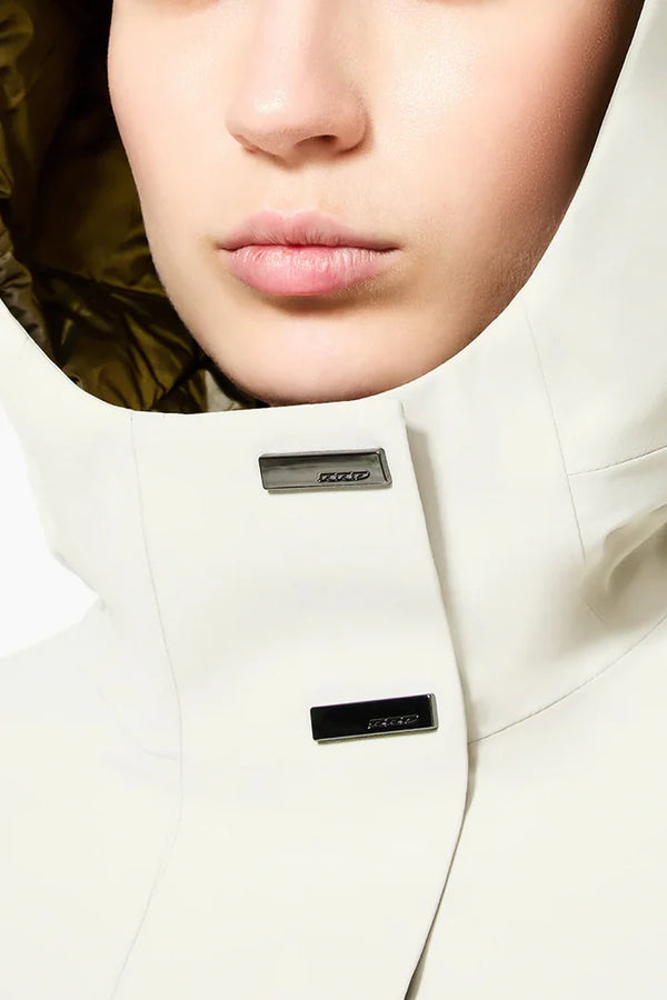 La giacca invernale di lunghezza media si caratterizza per il design funzionale e minimalista, che la rende unica per praticità, isolamento e protezione dal freddo e dalla pioggia. Realizzata in tessuto a membrana impermeabile e traspirante, presenta l'esterno in esclusivo Montecristo dal look opaco e liscio al tatto. L'innovativo sistema floating shield offre un abbraccio di calore dal fit impeccabile, grazie ai canali tubici che contengono l'imbottitura in piuma d'anatra. Il cappuccio, anch'esso imbottito, presenta un design essenziale e raffinato che incornicia delicatamente il viso. Sul davanti, la chiusura a zip è nascosta dalla patta impreziosita dai bottoni a barretta gun metal, che donano un tocco di eleganza contemporanea. Per la sua versatilità, la giacca è ideale nell'aggiungere un twist glam nella creazione di look decisi e distintivi, in abbinamento alla camicia dal taglio maschile e al morbido pantalone palazzo