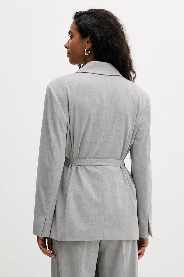 Giacca Val antracite di Emme Marella. Blazer in diagonale di misto viscosa stretch dal fit dritto. Scollo con rever a lancia. Chiusura doppio petto senza bottoni e con cintura in tessuto. Polsi con spacchetto. Capo foderato.