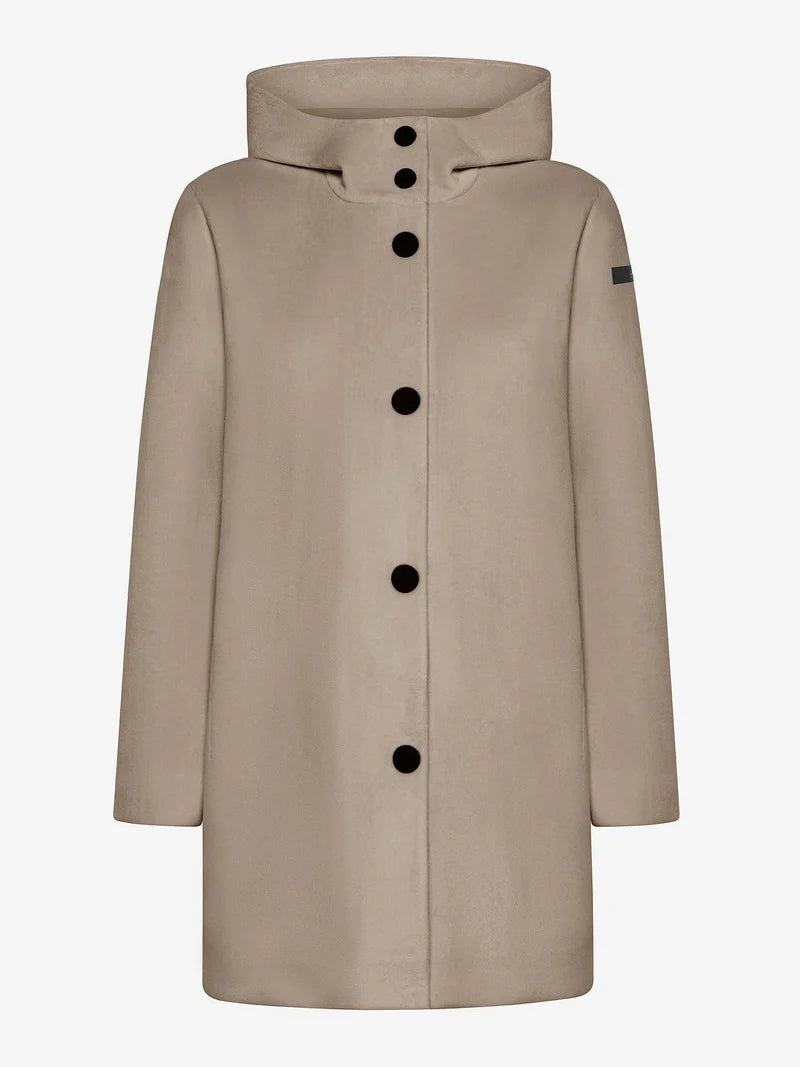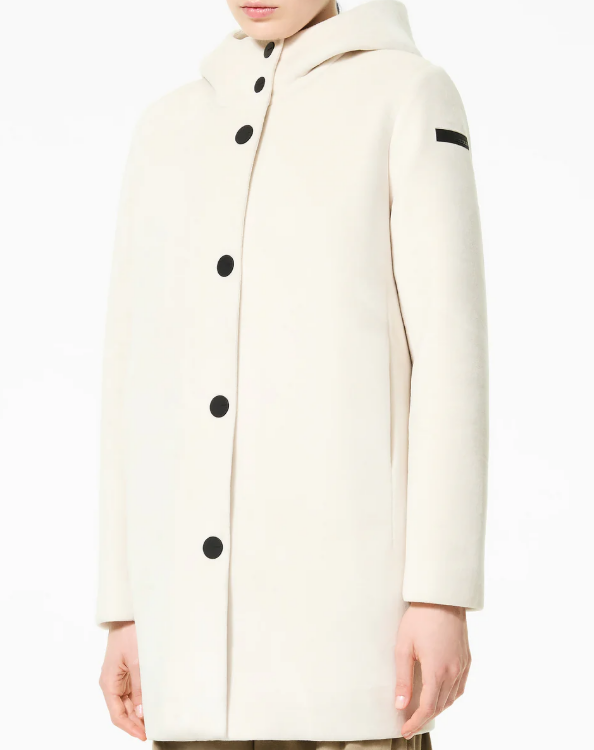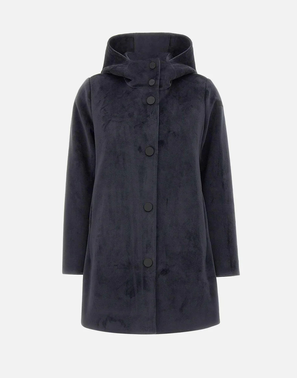 Tessuto velour e finish opaco che combina la raffinatezza al comfort del suo touch morbido e piacevole. La linea si distingue per dettagli di tendenza come l'avvolgente cappuccio integrato, i bottoni rotondi a pressione neri soft touch e il logo nero a microiniezione sulla manica sinistra