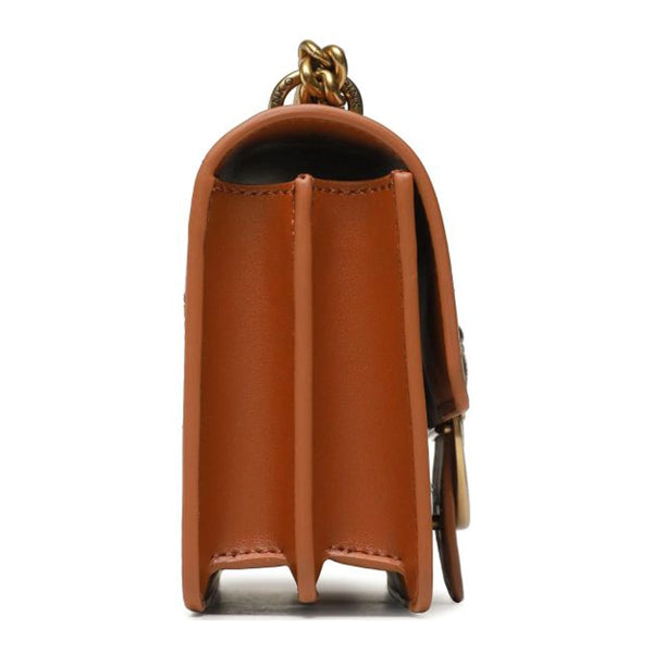La Mini Love Bag Icon è dotata di una chiusura con patta e bottone a baccello, completata dall’iconica fibbia Love Birds Diamond Cut in metallo dorato. Questo dettaglio, insieme alla metalleria con finiture in oro protetto 15 µm personalizzata con il logo Pinko, conferisce alla borsa un tocco sofisticato e distintivo. Gli uccellini Love Birds sono un simbolo inconfondibile del marchio, aggiungendo un elemento di classe che rende la borsa immediatamente riconoscibile.