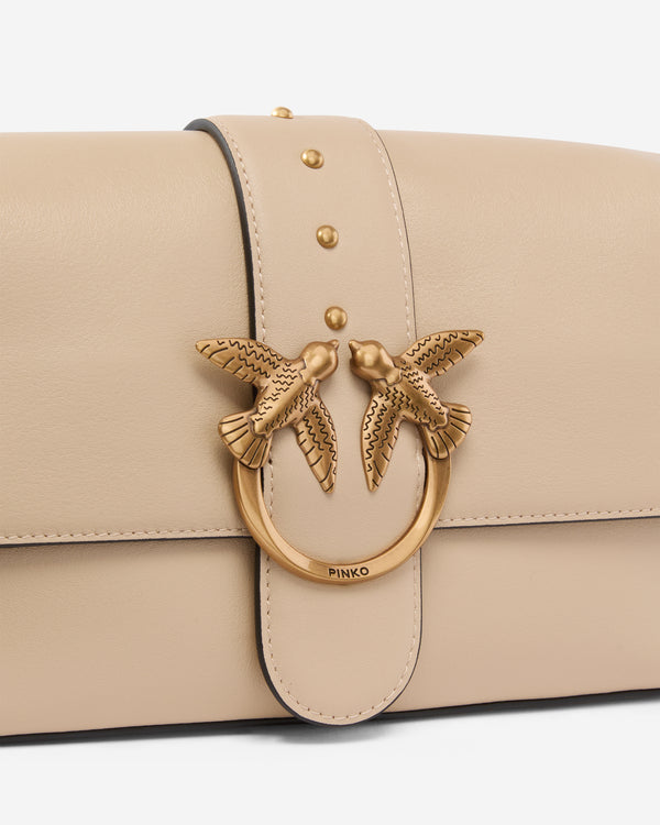 Design rettangolare e rigido, chiusura con pattina e fibbia iconica, tracolle removibili e intercambiabili.