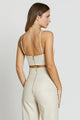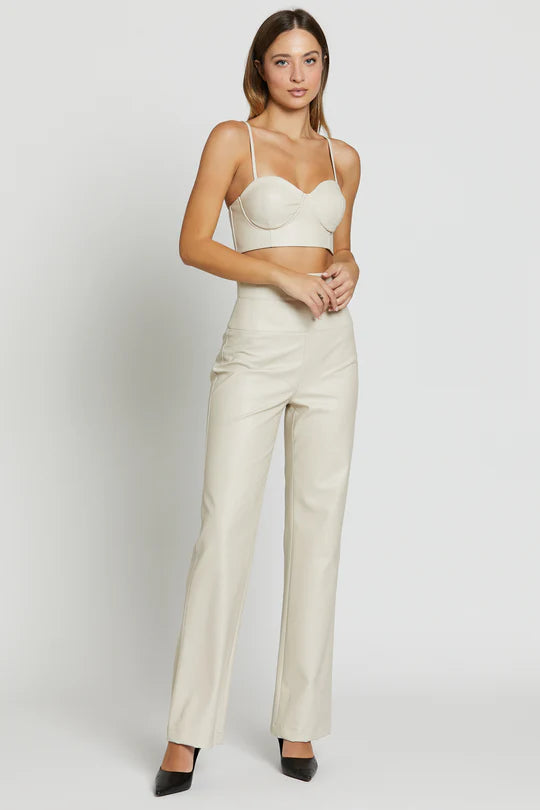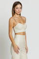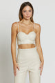 Leather Crop realizzato in eco pelle, questo crop top modello bustino è dotato di coppe imbottite per darti una silhouette perfetta. Le bretelline regolabili ti offrono una vestibilità su misura. Aggiungi un tocco di eleganza al tuo look con questo capo versatile e sostenibile.