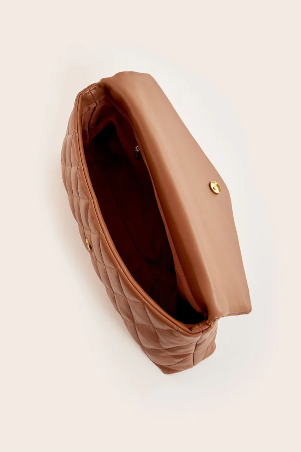 Borsa Après L'école a mano in ecopelle trapuntata. Chiusura a pattina con bottone a pressione con calamita e cerniera. Dettaglio logo metal plate Vicolo con finiture anticate color oro. Tasca interna con cerniera e taschina piatta interna.