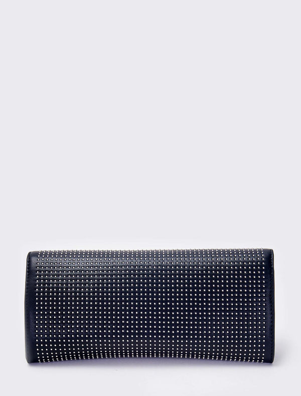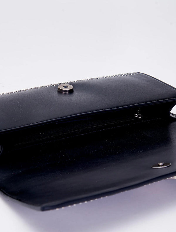 Borsa Rock a mano in ecopelle con microborchie. Chiusura a pattina con bottone a pressione con calamita. Dettaglio logo metal plate Vicolo con finiture anticate color argento. Tasca interna con cerniera e taschina piatta interna.