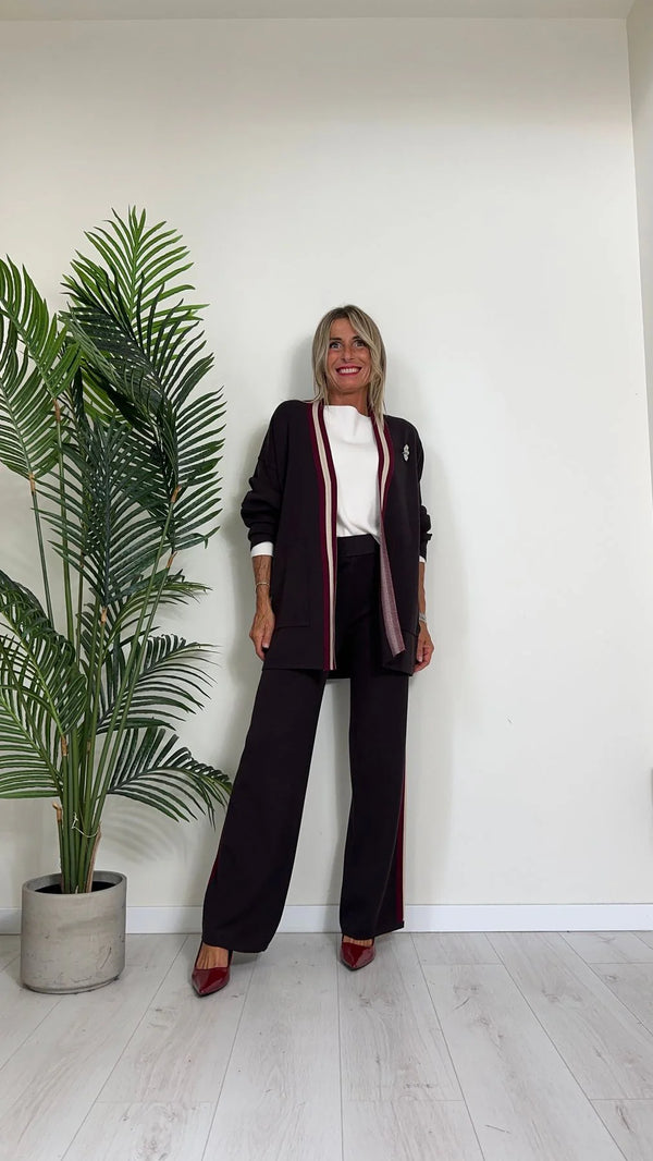 CARDIGAN COLLO SCIALLATO CON PROFILI RIGHE A CONTRASTO