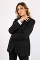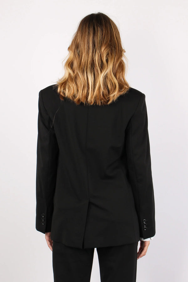 Blazer monopetto realizzato in morbido jersey di cotone lyocell, lavorato a punto Milano. Modello d'ispirazione maschile dalla linea dritta, con collo a rever, taschino sul petto e tasche a filo con patta applicata sul davanti. Semifoderato, è rifinito con spacco centrale sul retro e chiusura frontale con due bottoni.
