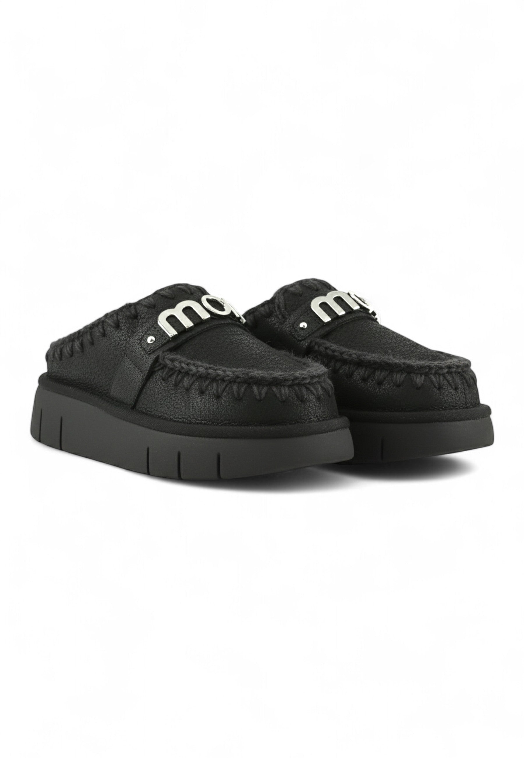 Raffinato, caldo e dal look deciso: il nuovo Bounce Clog di MOU si rinnova per l’autunno-inverno 2025 con una speciale finitura in pelle effetto cracked nei toni Black/Grey.