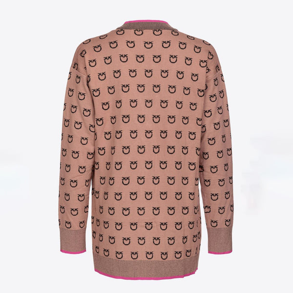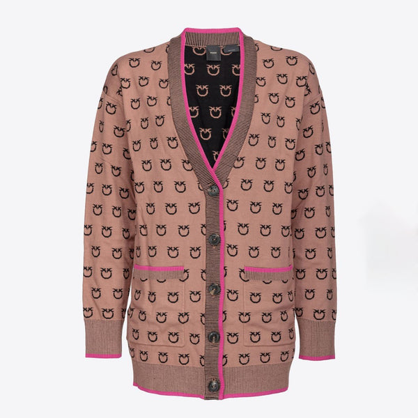 Cardigan in tessuto jacquard di misto lana con motivo logo PINKO e tasche applicate sul davanti. Scollo a V, polsini, bordo tasche e fondo a costine. Chiusura frontale con bottoni.