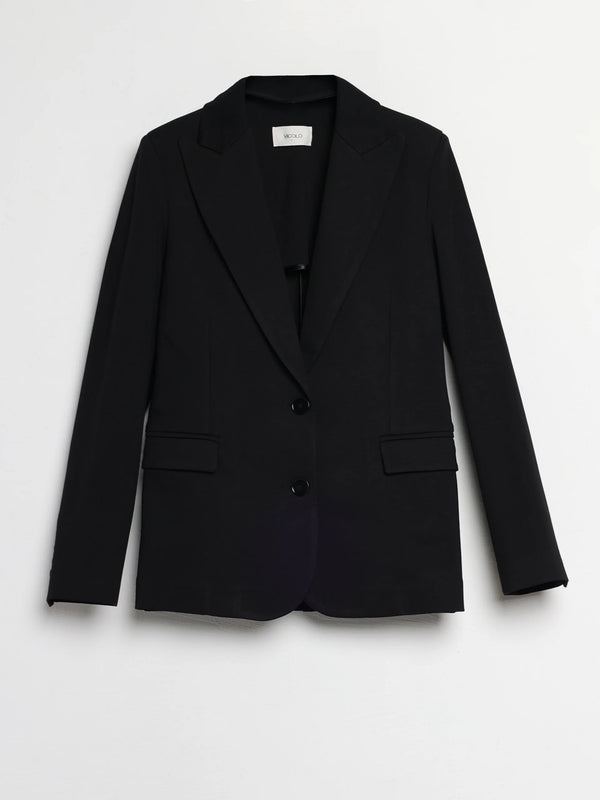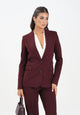 VICOLO Giacca bordeaux da donna dalla linea dritta e pulita che valorizza la silhouette. Dotata di revers classici, chiusura monopetto con un bottone e tasche con pattina, unisce struttura e raffinatezza. Sul retro la cucitura centrale esalta la vestibilità, mentre le maniche lunghe sono arricchite da bottoni decorativi al polso. Versatile e sofisticata, è ideale per look da ufficio o occasioni eleganti, perfetta con il pantalone coordinato o con gonne e accessori neutri. La modella indossa la taglia S ed è alta 170 cm. Si consiglia stiratura a media temperatura. Stagione autunno-inverno.