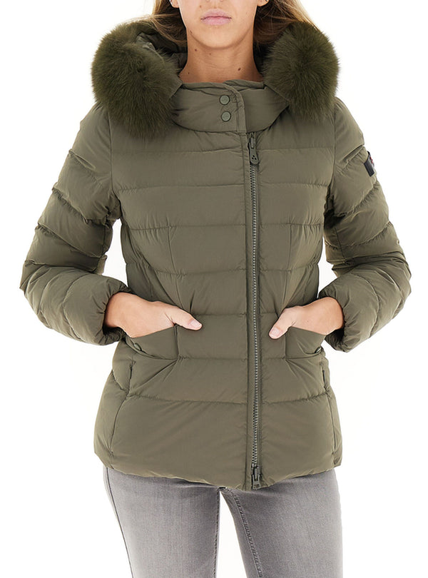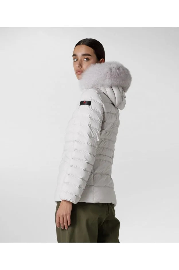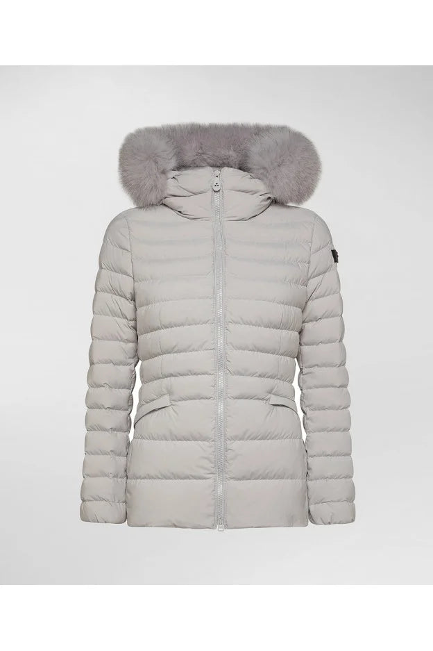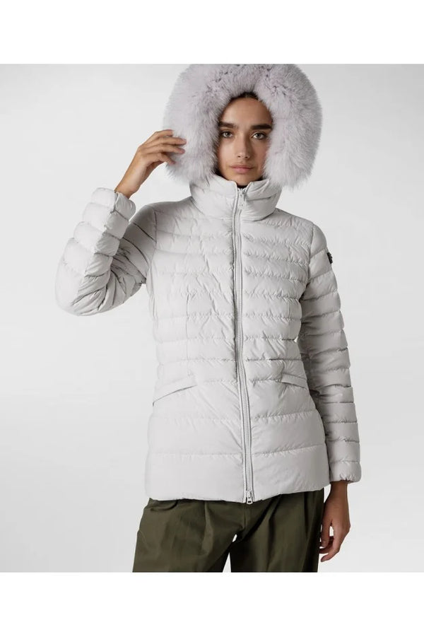 Piumino in piuma naturale, in nylon leggero e microfibra di poliestere che, grazie alla temperatura di tintura a 130°C, si modifica, acquisendo una mano strutturata e un tatto polveroso. Il capo è impreziosito da un bordo staccabile in pelliccia di volpe in tono colore, a contorno del cappuccio a collo alto. La vestibilità asciutta è sottolineata dalle trapunte che vanno gradualmente ad allargarsi sul fondo. Funzionali i dettagli: chiusura con zip per le tasche e, a doppio cursore, per il capo. Inserti elastici antivento ai polsi. Un must-have per il guardaroba invernale, perfetto per la città e il tempo libero. Zip centrale a vista con doppio cursore Lunghezza: media Imbottitura in piuma naturale Collo bordato in pelliccia di volpe staccabile Nylon leggero e microfibra di poliestere
